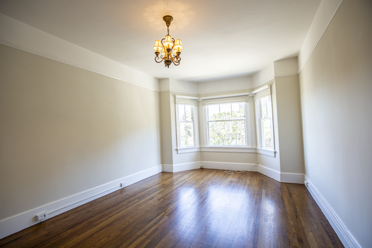 This 2-bedroom, 2-bath apartment is in a small 6-unit building located in the heart of Cow Hollow (93 Walk Score), just three blocks from retail & restaurants on Union Street & walking distance to all the merchants on Chestnut St. The unit is quite spacious which is noted as soon as one steps into the huge foyer. Off the foyer is the south-facing living room & formal dining room both w/wood-burning fireplaces & access to the private south facing patio form the dining room. Through a long butler's pantry w/built-in cabinetry & desk space one enters an updated kitchen w/lots of granite counter prep space & stainless-steel appliances: gas stove, dishwasher & refrigerator w/freezer drawer. Just off the kitchen is the laundry room. Both bedrooms are spacious & have great eastern views of Russian Hill & the Bay! There are 2 full baths, 1 is en-suite. Gleaming hardwood floors, great ceiling height & charming details throughout. The unit comes w/1 private garage space. Parking for a 2nd car on the street is easier than most neighborhoods. No pets.